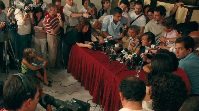 “No podíamos ir contra todos los medios nacionales y provinciales, y mi papá decide ir en contra de tres periodistas locales”, dice Facundo, en un tramo de su alocución. Una de las personas demandadas fue Alejandra Elstein, la recordada fundadora de Otro Punto, que en la escena siguiente aparece en una rueda de prensa del Círculo Sindical y le responde con una frase que sigue resonando hoy: “me parece que se equivoca de enemigo”.
