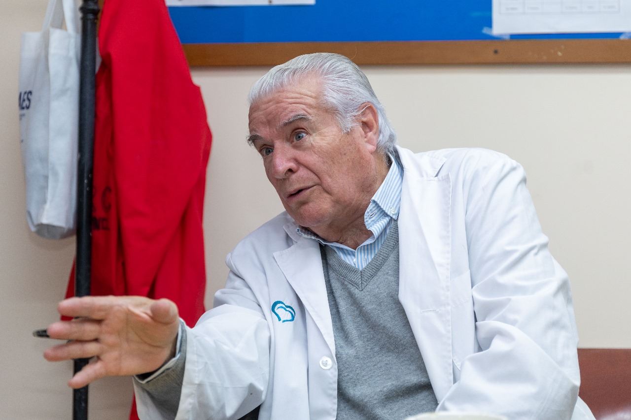 El reconocido médico continúa yendo a trabajar ad honorem todos los días, aunque hace años le llegó la jubilación. Tiene un profundo amor por su profesión. Oriundo de Alejandro Roca, vivió en el hospital Cabrera por 5 años y allí se formó como cirujano. Nos citó en su segunda casa, el Nuevo Hospital San Antonio