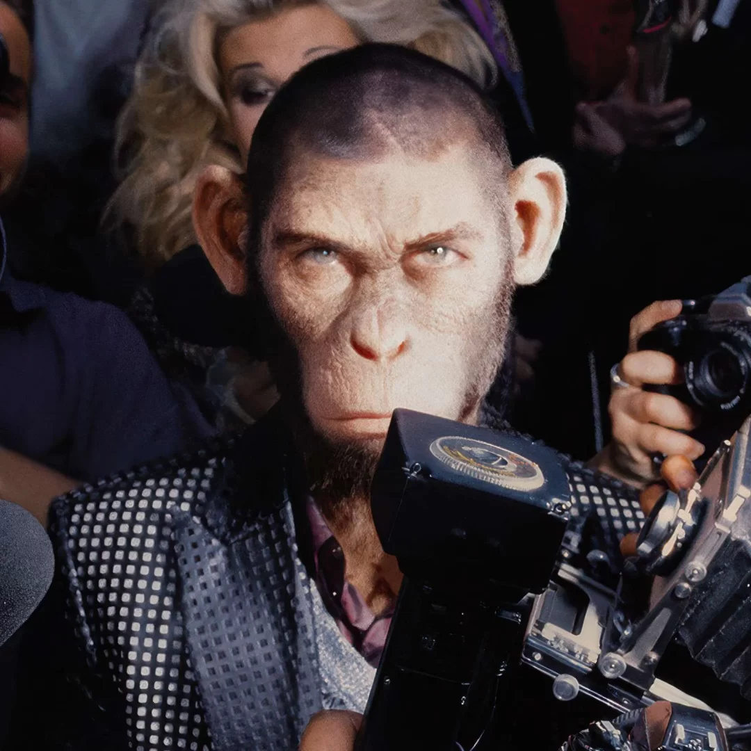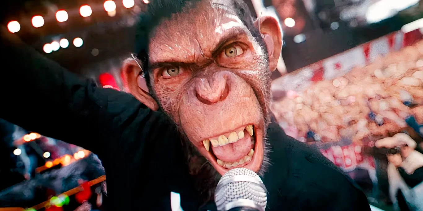 Este mono creado de manera digital busca incomodar. No nos va a presentar a un personaje con el que empaticemos de entrada, al contrario. Un animal peludo, encorvado, con mirada melancólica y movimientos entre lo torpe y lo expresivo. Una criatura diseñada no para hacernos reír, sino para hacernos algunas preguntas. Porque ver al mono enfrentarse al éxito, a los excesos y a sus propios vacíos es ver a Robbie, y a nosotros mismos, atrapados en el espectáculo.