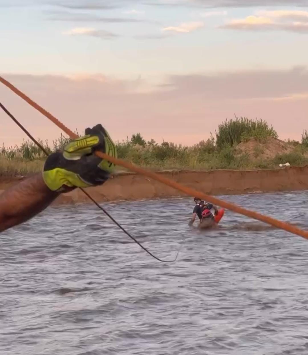 Tres dotaciones de la institución local en conjunto a Bomberos des Las Higueras, personal policial, DUAR y el servicio de emergencias Cardiomed, trabajaron en tareas de rescate de 3 personas que se encontraban en un islote del río, en la zona de paso del indio.