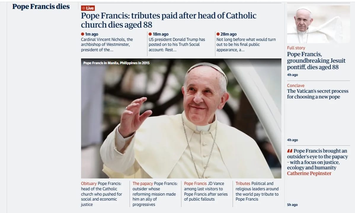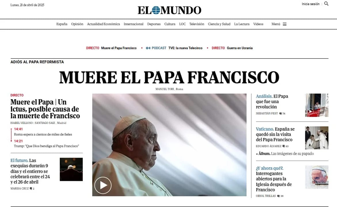 La muerte del Sumo Pontífice, a los 88 años, generó una profunda repercusión internacional. Diversos medios gráficos de renombre dedicaron sus portadas a recordar la figura de Jorge Bergoglio, destacando su legado como líder de la Iglesia Católica. Tras meses de complicaciones de salud, el fallecimiento del Papa Francisco conmovió al mundo entero, y las principales cabeceras reflejaron el impacto de la noticia en sus ediciones impresas.