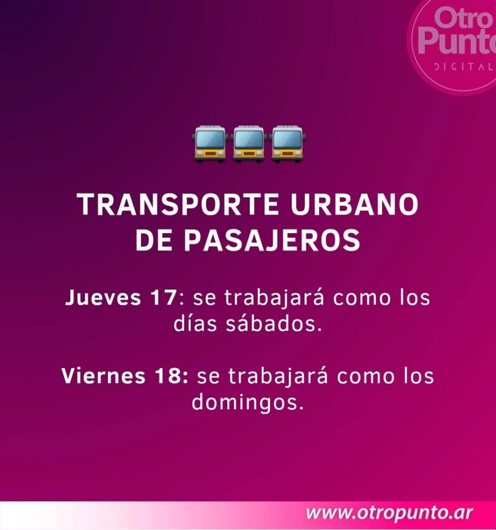 Transporte Urbano de Pasajeros: frecuencias de líneas como los días sábados el Jueves Santo y como los domingos el Viernes Santo.