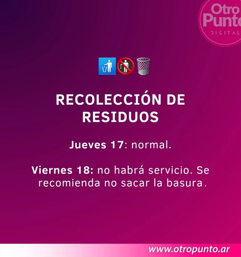 Recolección de residuos: Jueves Santo servicio normal y Viernes Santo ningún tipo de servicio.