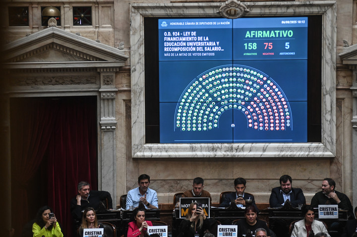 Con 158 votos a favor, 75 en contra y 5 abstenciones, el proyecto obtuvo media sanción. La votación se desarrolló en medio de un clima político tenso y una creciente preocupación por la situación crítica que atraviesan las universidades nacionales. La sesión estuvo acompañada por una masiva movilización frente al Congreso, que incluyó a trabajadores universitarios, estudiantes, personal del Hospital Garrahan y jubilados. La jornada estuvo marcada por incidentes con la Policía Federal, que reprimió con gases lacrimógenos a manifestantes.