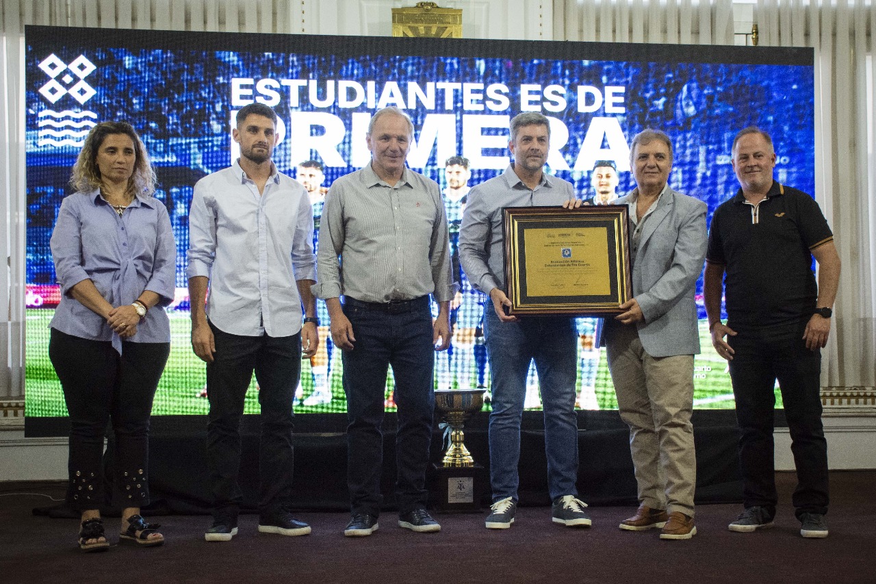 En un emotivo acto realizado en el Salón Blanco del Palacio Municipal, el intendente Guillermo De Rivas encabezó el reconocimiento oficial al plantel, cuerpo técnico y dirigentes de la Asociación Atlética Estudiantes tras concretar el logro deportivo más importante en la historia de la ciudad: su ascenso a la Primera División del fútbol argentino.