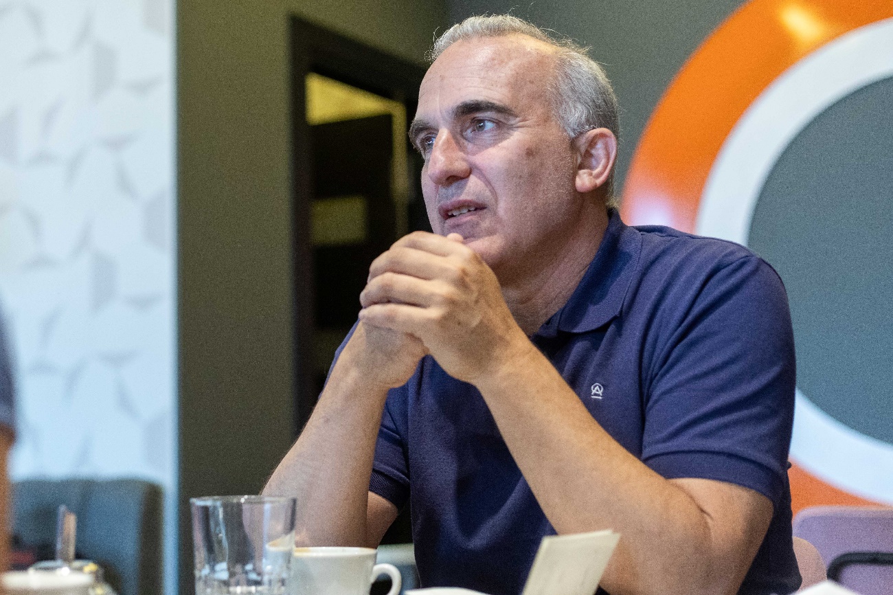 Sus manos narran con él: se mueven como si también tuvieran algo que contar. Los ojos pardos se encienden cuando recuerda sus inicios, aquellos días en que siguió sin dudar la voz firme de la intuición: estudiar Comunicación Social. “Siempre tuve claro que quería escribir. Arranqué con la carrera y ya tenía otras inquietudes. Era época del menemismo, de deudores hipotecarios, personas que perdían casas, campos. Eso empezó por interpelarme como persona y como periodista. Lo del deporte fue quedando al margen. En 2° año envié a Puntal algo de lo que escribía, creo eran poemas. Lo recibió Pablo Mendelevich, quien el director en aquel momento. No sé qué vio, pero me llamó. Así arranqué y el diario fue mi casa por 31 años”.