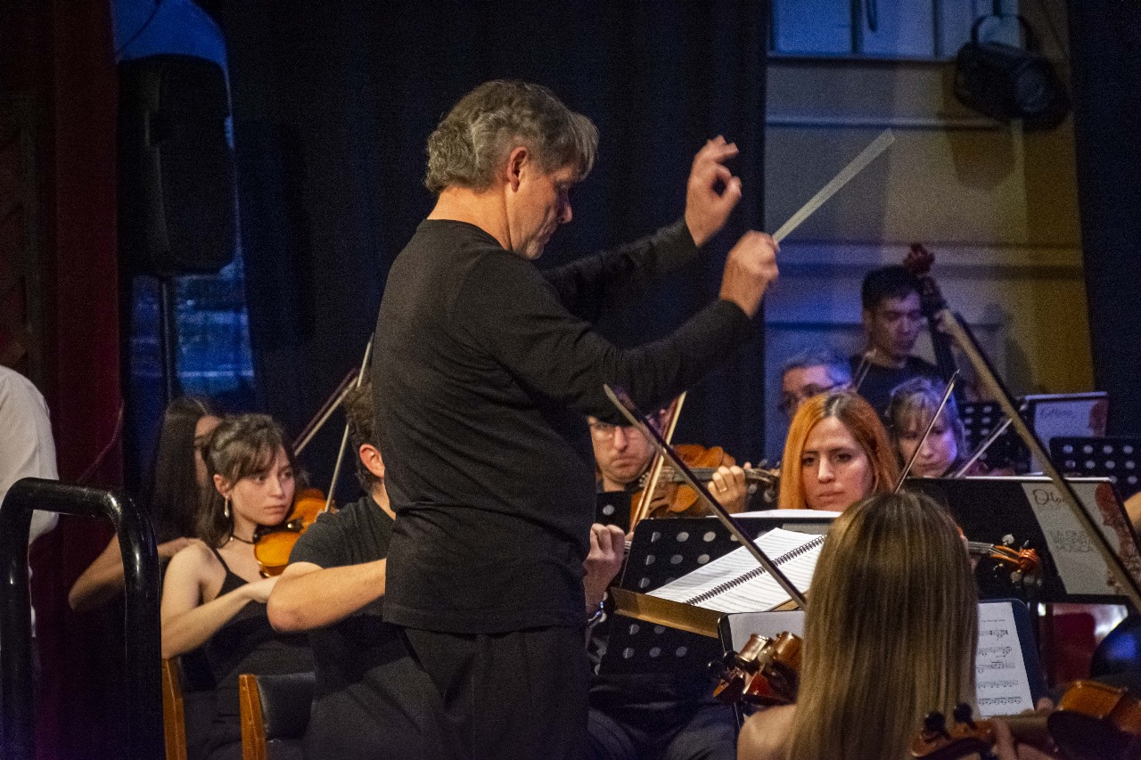 La historia de la orquesta está profundamente ligada al propio recorrido de Lhez. Él mismo recuerda que la Filarmónica nació como un sueño que comenzó en el Conservatorio Julián Aguirre, en vínculo con la Fundación por la Cultura, y que terminó tomando forma gracias a un proyecto que él impulsó incluso antes de que existiera la decisión política de oficializarla. Su creación también rinde homenaje a una orquesta sinfónica que existió en Río Cuarto en los años 50 y que estuvo cerca de convertirse en un elenco provincial. “Ver hoy el escenario lleno con músicos de la ciudad es uno de los mayores logros”, expresa.