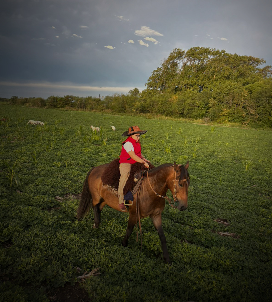 Ese amor por la vida de campo fue creciendo de manera casi natural. Santino vive con su familia en Tres Acequias, a 12 kilómetros de Río Cuarto. Allí, entre la casa, el campo y los animales de la zona, encontró el escenario ideal para desarrollar una pasión que parece brotar desde lo más profundo de sí. Aunque en su casa tienen caballos, el entorno rural en el que se crio lo vinculó también con otras tareas y costumbres camperas. Llega de la escuela y enseguida se va a andar a caballo, a correr vacas, a ayudar a vecinos, a participar de vacunaciones o de tareas rurales. Su mamá, Betina, explicó que ese mundo siempre estuvo muy presente por el lado de su esposo, nacido y criado en el campo. Santino lo fue observando, absorbiendo y haciendo propio.
