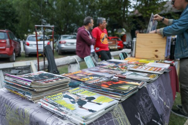 Las caricaturas de Magalú también se hacían un espacio entre la muchedumbre. El mate corría de mano en mano. Las reposeras soportaban estoicas los cuerpos que tarareaban canciones que evocaban momentos felices. Los discos de vinilo aguardaban pacientes por los amantes del roce de la púa y el plástico. “Respetamos lo virtual, pero seguimos disfrutando de recuperar el amor por una obra física tangible. El encanto del vinilo desde lo que significa el arte de tapa, volver a la tertulia de no escuchar solo una canción sino el disco completo. Es un ritual apasionante”, comentó Claudio Ledo de Feria de Vinilos Rio Cuarto.