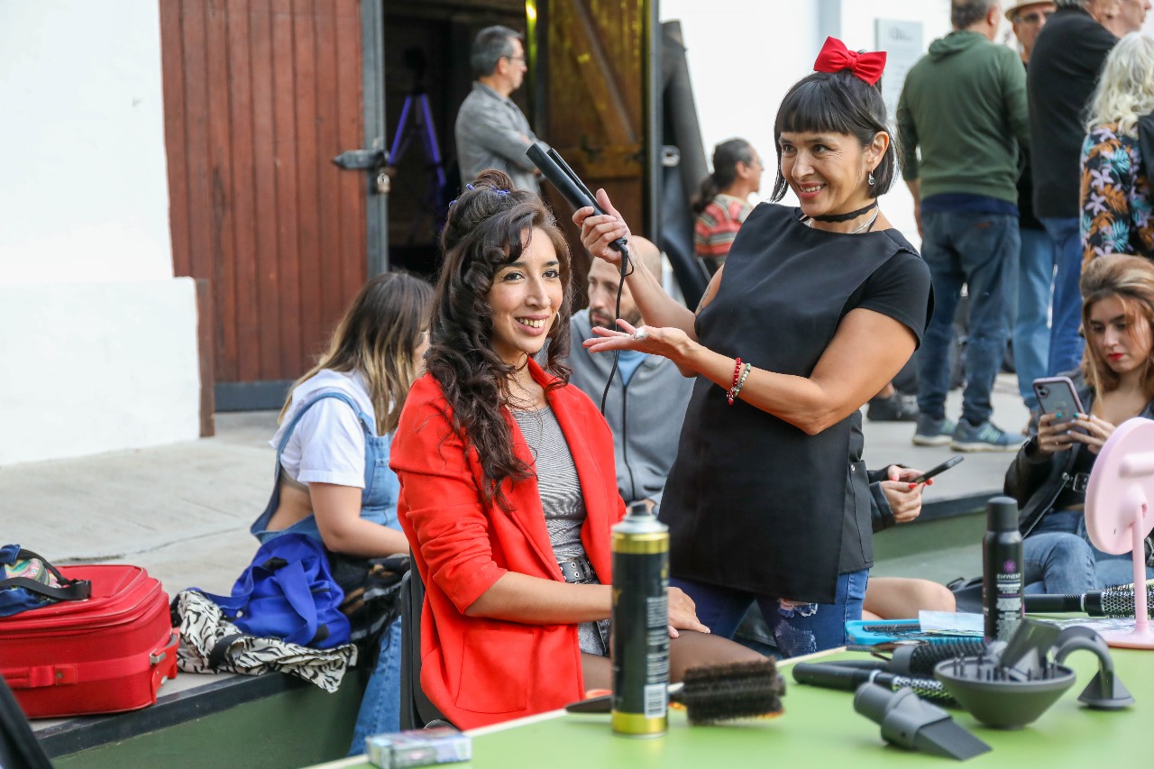 Pamela Murua es estilista y se sumó a la iniciativa de realizar peinados reflejando la época pasada. “Soy la peluquera del rock”, lanzó risueña entre cepillos y batidos. Sus manos se movían al compás de los pelos locos que bailaban por el incipiente viento de marzo.