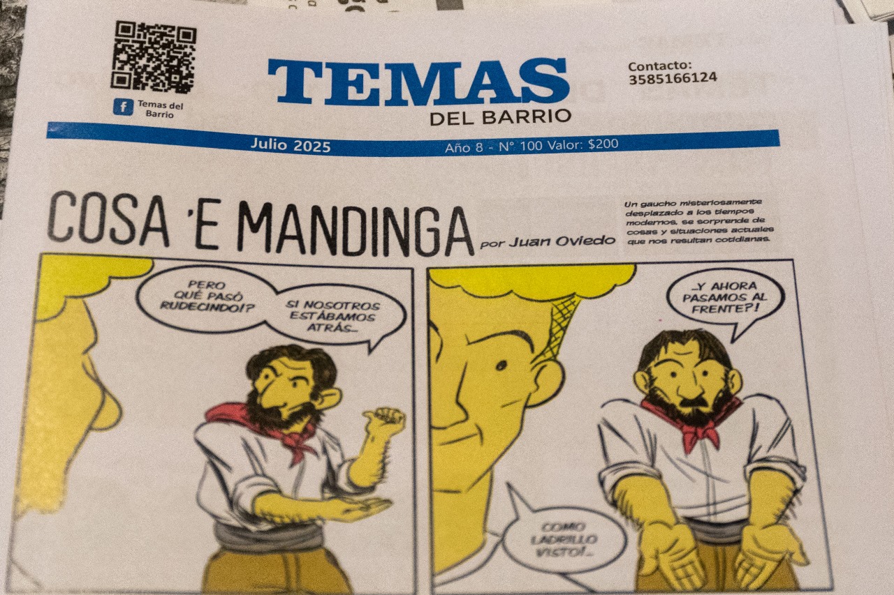 “La revista Temas del Barrio tiene 8 años y la novedad es que se viene la tapa número 100. Es una revista mensual y pudimos mantenerla aún en pandemia”, comenta Javier con orgullo.